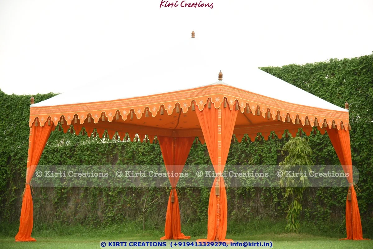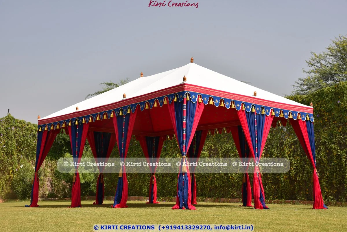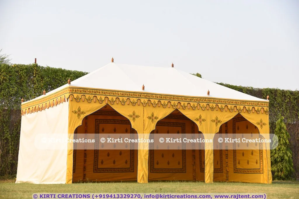 Choose the finest luxury tent of your preference by visiting Kirti Creations now. We provide a vast selection of tent collections to meet all your requests at the lowest possible cost. Visit us right away to transform your outdoor gathering into a magical occasion. Our luxurious tents are resistant to a variety of weather situations, including snow, rain, and strong winds. Our proficiency and dedication to quality assurance will guarantee that your unique event is nothing short of extraordinary.